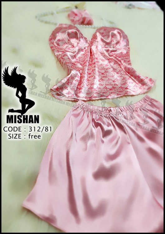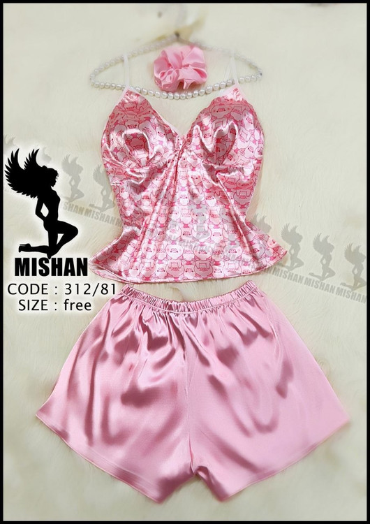 لباس خواب عروسکی ست تاپ و شورتک + اسکرانچ
